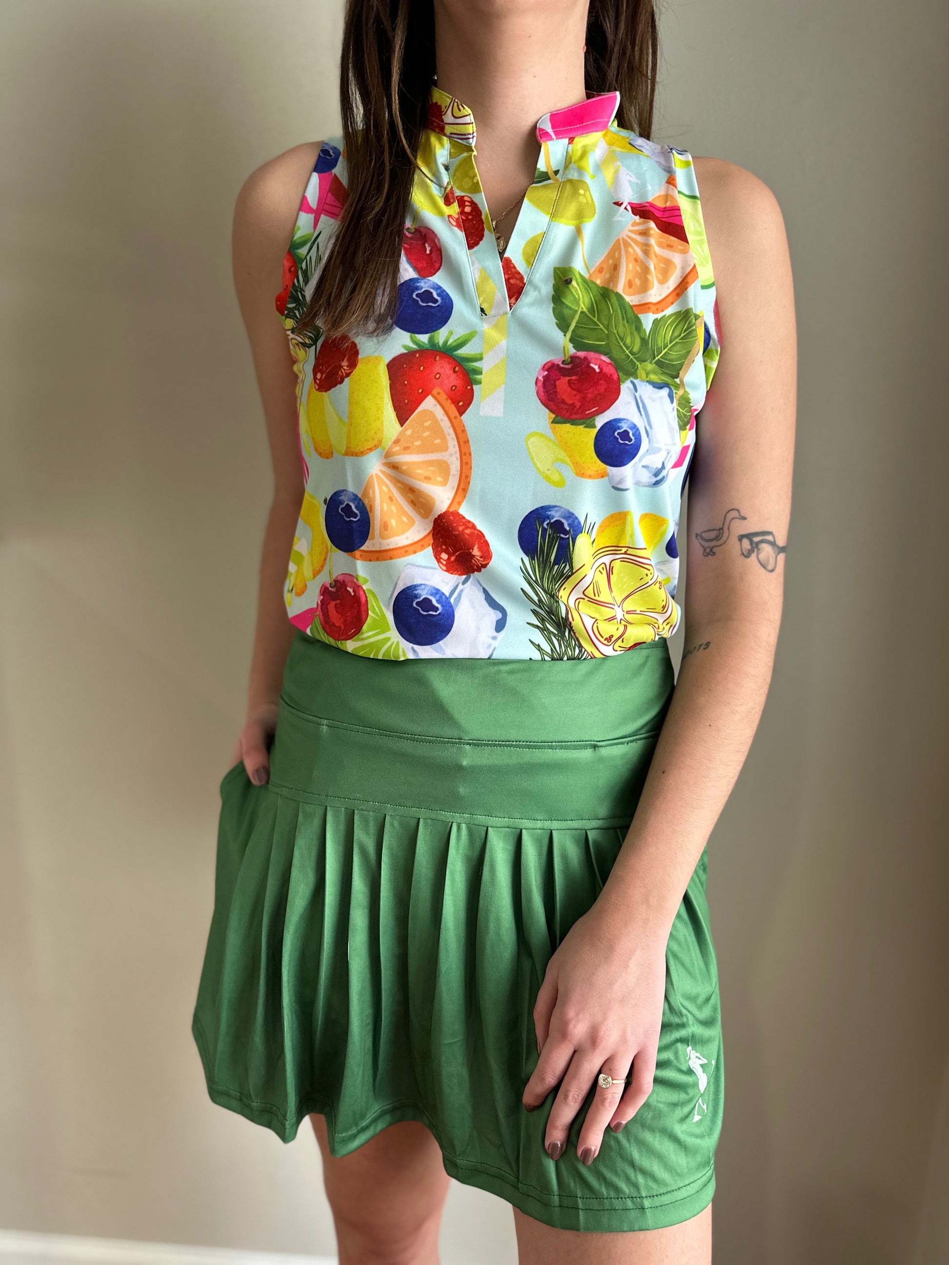 Get ready to tee off in style with the Birdie Juice Women's Golf Sleeveless V-neck Polo. With no buttons or zippers, this polo offers maximum comfort while you swing. Plus, the 92% Polyester and 8% Spandex fabric is UPF 50+ rated, anti-odor, moisture-wicking, wrinkle-resistant, and has 4-way stretch. Score a hole in one with this playful and functional polo!
