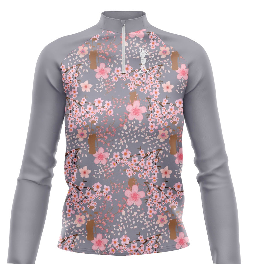 Add a bit of fun and style to your golf game with the Bloomin Bogey Women's Golf Quarter Zip. Featuring a unique hand-drawn design inspired by Washington, DC cherry blossoms, this quarter zip also has hidden golf bag in the design. Made with 92% Polyester and 8% Spandex, it offers UPF 50+ protection, anti-odor and moisture-wicking properties, as well as wrinkle resistance and 4-way stretch for maximum comfort on the course.