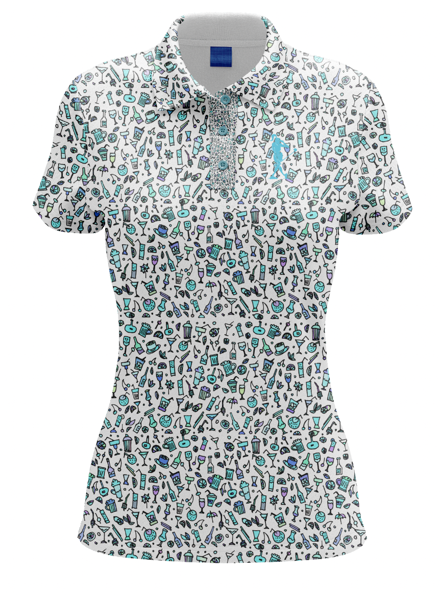 Get ready to quench your thirst on the green with this one-of-a-kind selection of caddy-approved drinks featured on a women's golf polo. Made with 92% Polyester and 8% Spandex, this UPF 50+ polo is also anti-odor, moisture-wicking, wrinkle-resistant, and has 4-way stretch for optimal comfort and performance. Cheers to that!