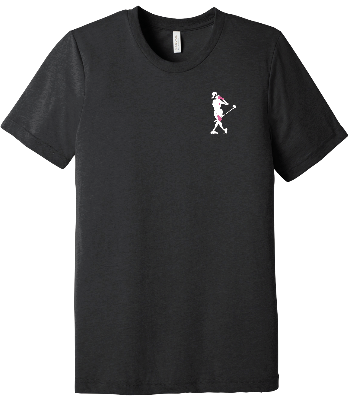 The 2023 Breast Cancer Awareness short sleeve t-shirt. The shirt is dark grey.