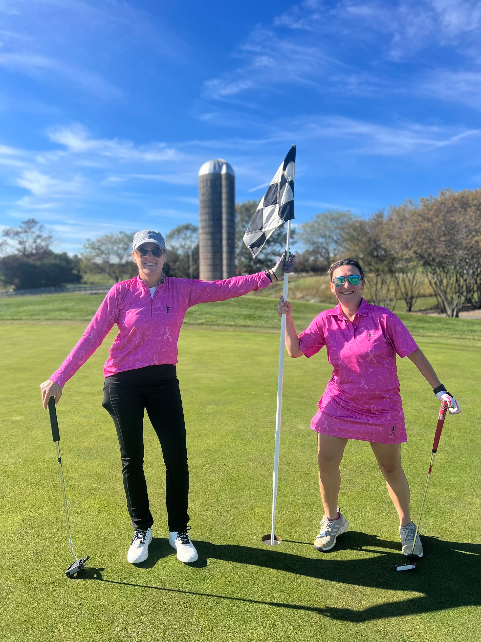 Join the fight against Breast Cancer with our unique women's ruffle golf skort, designed by Stacy, a breast cancer survivor and co-owner. This skort has a 15" length and is made of 100% Polyester with UPF 50+ protection, Anti-Odor technology, Moisture Wicking properties, and is Wrinkle Resistant with 4-Way Stretch. Show your support while staying stylish on the course!
