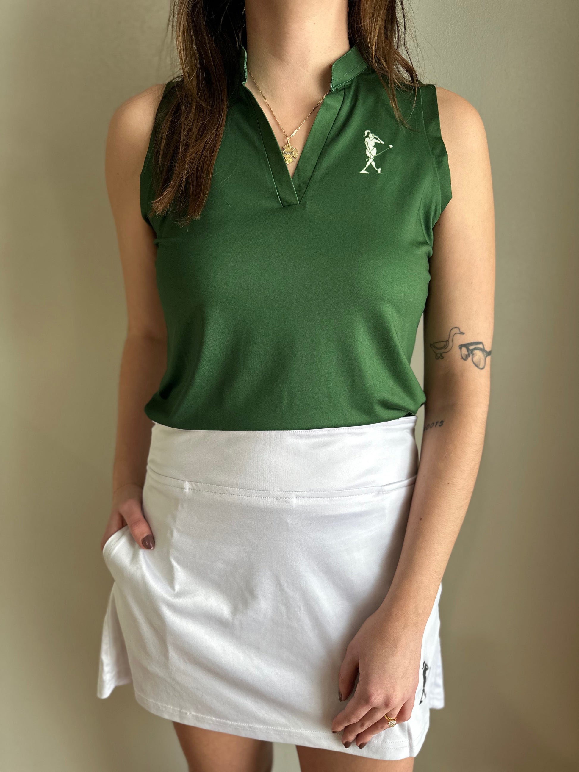 Pair this chic emerald-hued women's golf tank top with the Greens Keeper Skort! Made with 92% Polyester and 8% Spandex, it offers UPF 50+ protection, anti-odor technology, moisture-wicking properties, and wrinkle resistance. Plus, it boasts 4-way stretch for optimal comfort and movement on the course.
