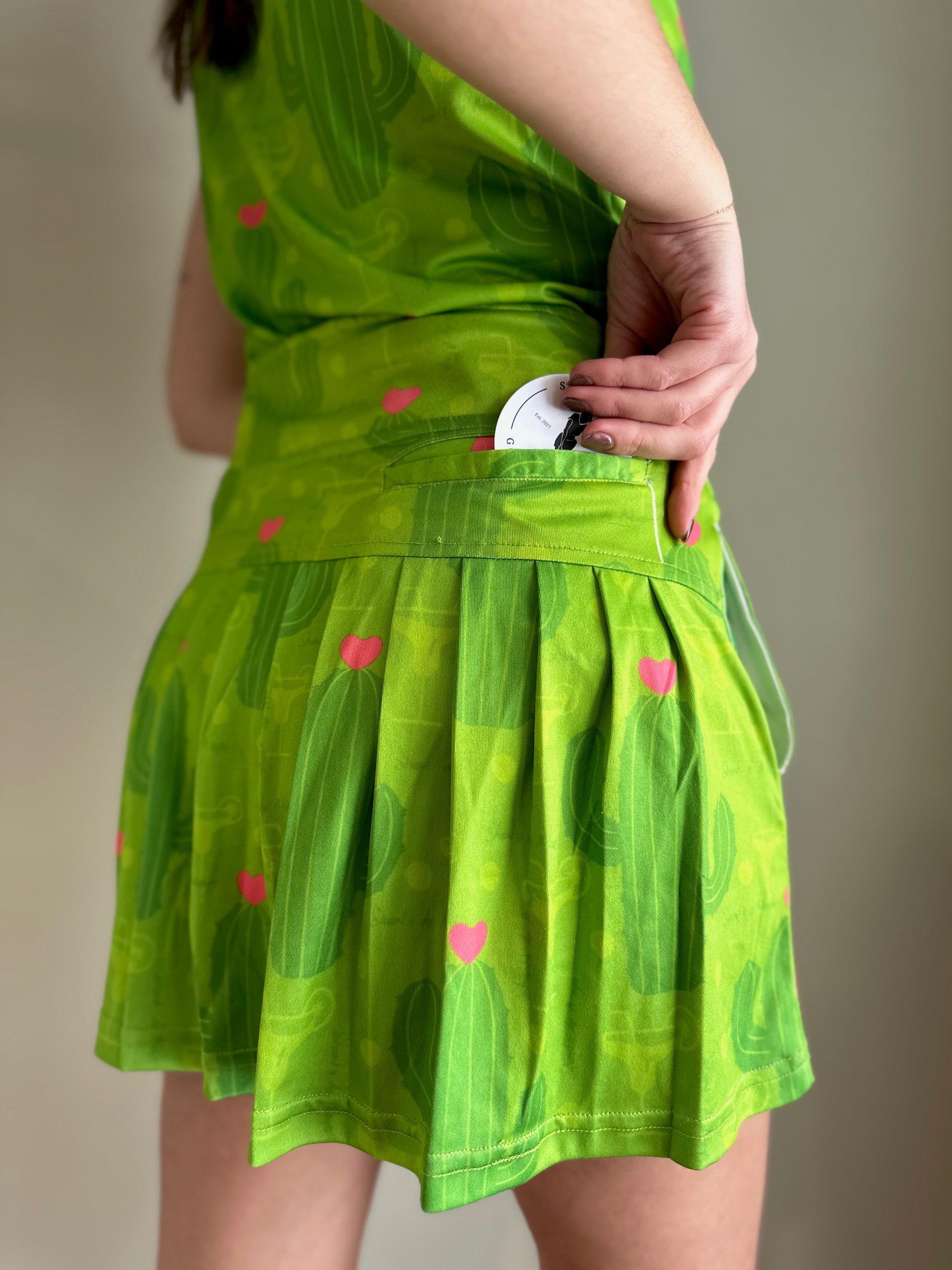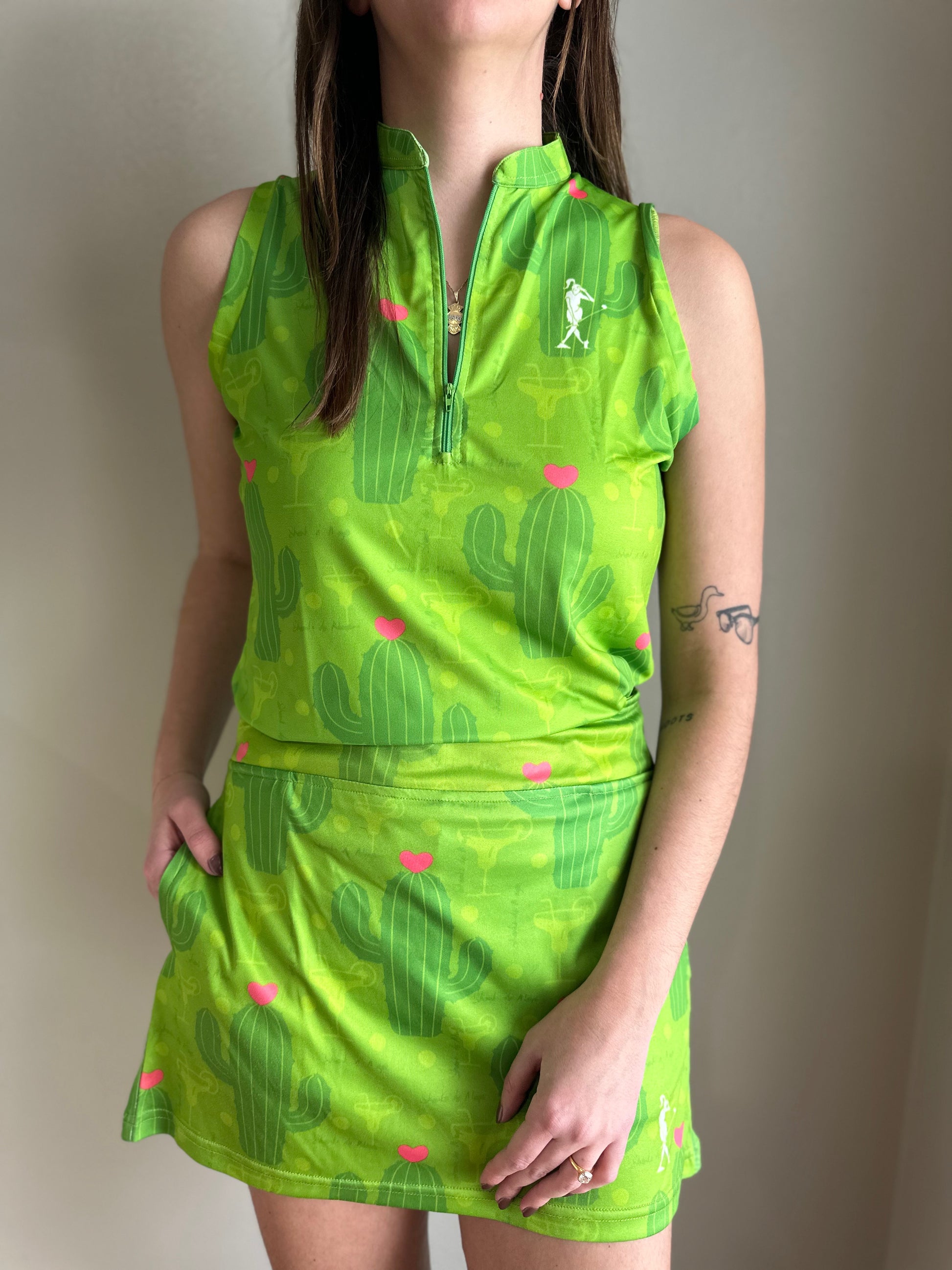 Unleash your playful side with this ruffle-adorned golf skort perfect for celebrating Cinco de Mayo! Don't miss the charming ruffles on the back and the adorable cactus and subtle margarita glass design. Made from 92% polyester and 8% spandex, this skort offers UPF 50+ protection, anti-odor technology, moisture-wicking properties, wrinkle resistance, and 4-way stretch for maximum comfort. And with a 15" length, you'll be ready to hit the green in style!