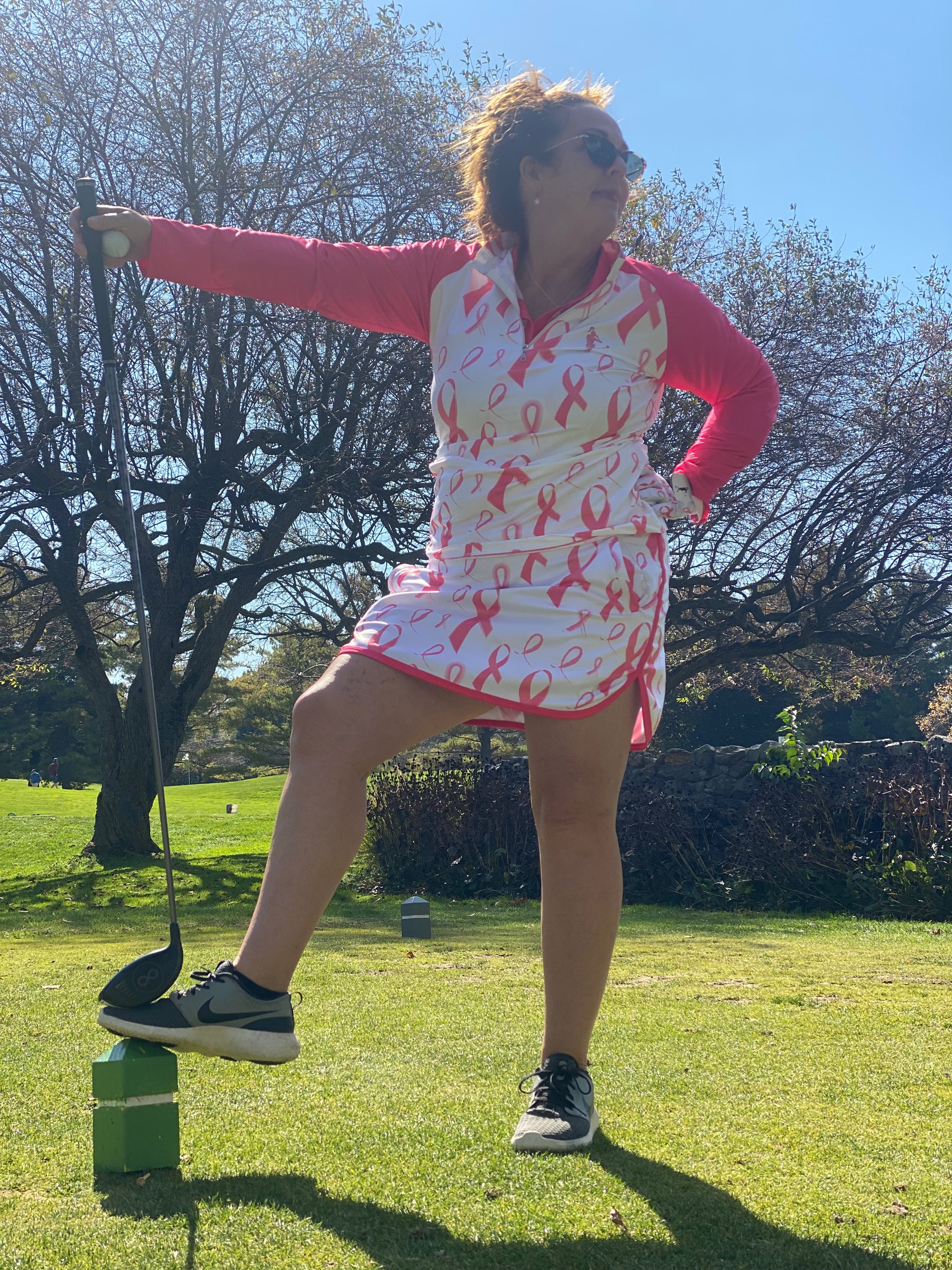 Represent your love for breast cancer awareness in a stylish way with this women's golf quarter zip. Pair it with a matching golf polo or skort! Made of 92% Polyester and 8% Spandex, this piece offers UPF 50+ protection and features anti-odor, moisture-wicking, wrinkle-resistant, and 4-way stretch properties.
