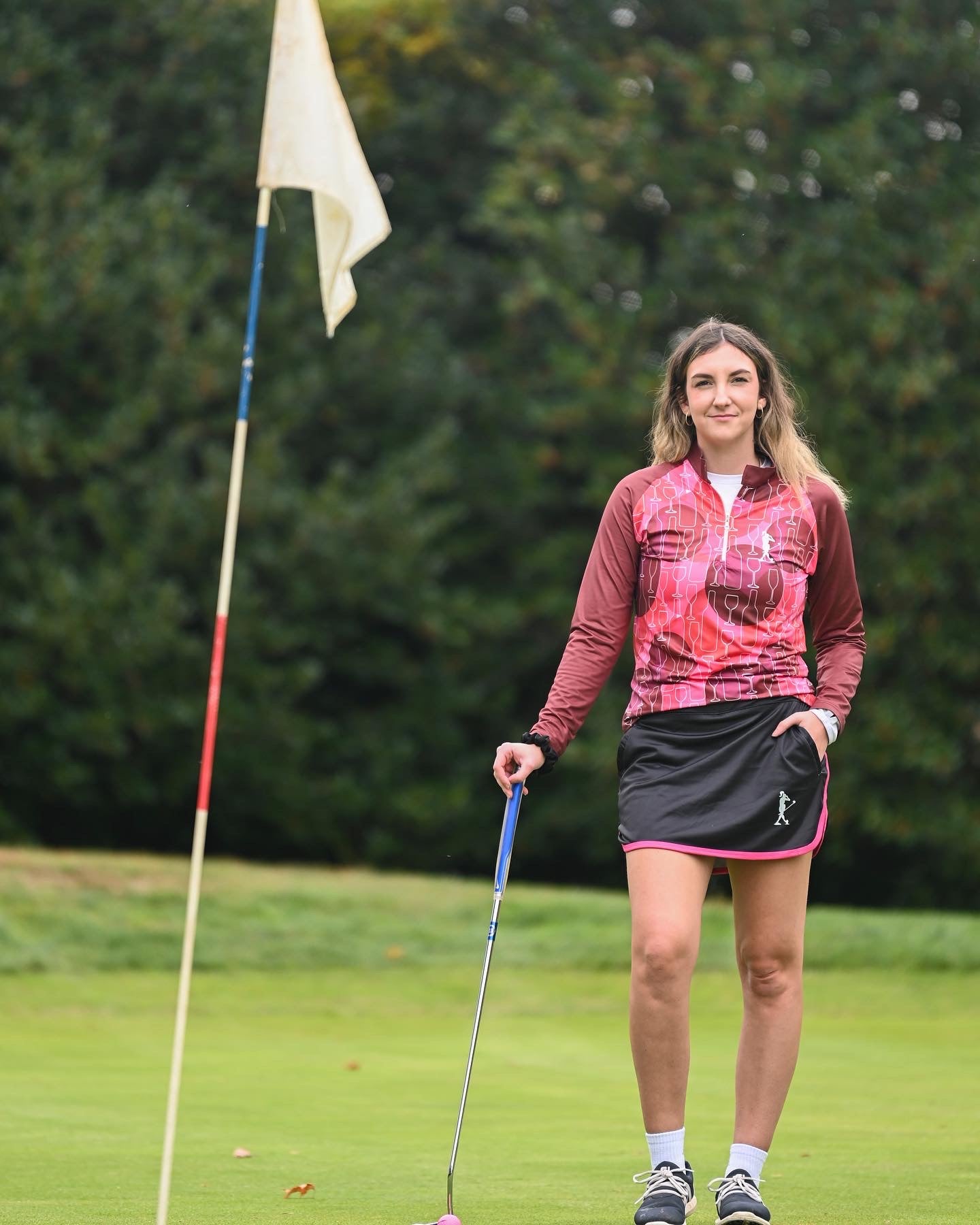 Can't go wrong with a basic black golf skort with a hint of bright pink. Mix and match this golf skort with the Madonna or the Neon Rose Golf Quarter Zip. A girl can't have too much black in their golf wardrobe.